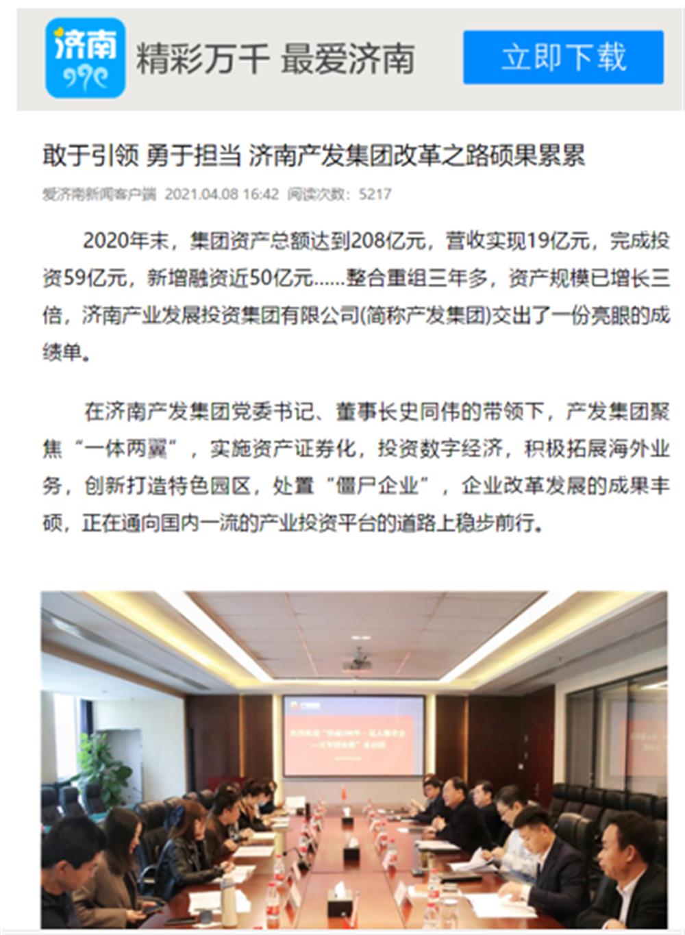 2021年是十四五規(guī)劃開局第一年,也是濟南產(chǎn)發(fā)集團第二個三年行動計劃的起步之年,站在新的歷史起點上,產(chǎn)發(fā)集團將今年確定為管理提升年,吹響了十四五期間向國內(nèi)一流產(chǎn)業(yè)投資集團邁進的號角,相信在新一輪國資國企改革大背景下,產(chǎn)發(fā)集團未來發(fā)展可期,強省會下的濟南產(chǎn)業(yè)展現(xiàn)新的輝煌。