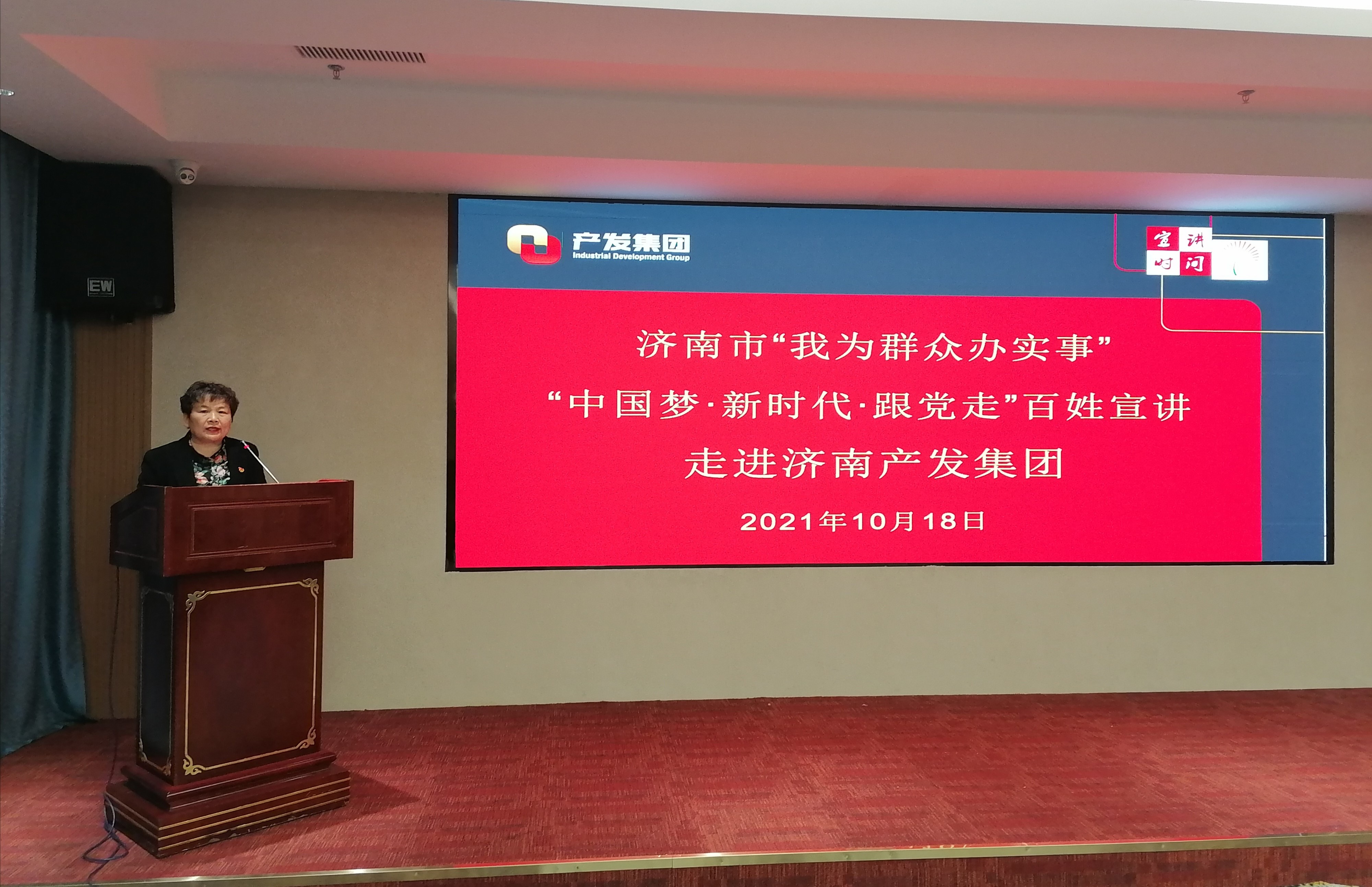 為深入貫徹落實習(xí)近平總書記“七一”重要講話精神,扎實推進黨史學(xué)習(xí)教育“我為群眾辦實事”活動,10月18日下午,濟南市“我為群眾辦實事”“中國夢·新時代·跟黨走”百姓宣講活動走進濟南產(chǎn)發(fā)集團。在市委講師團副處級干部呂桂紅的率領(lǐng)下,“我為群眾辦實事”百姓宣講團的6位宣講員用他們的親歷、親聞、親為,為產(chǎn)發(fā)集團50余名參會干部職工講述“聽黨話、跟黨走、率先垂范、主動擔(dān)當(dāng)、無私奉獻”的動人故事。