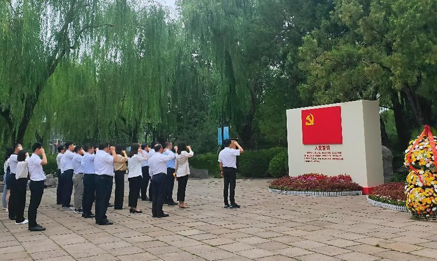 在美銘廣場,黨員干部們一同為王盡美、鄧恩銘紀念石雕獻花。隨后,由集團黨委委員、紀委書記盧剛帶領(lǐng)全體黨員干部,現(xiàn)場宣誓,重溫入黨誓詞,回顧入黨宣誓時的莊嚴承諾和堅定決心,提醒全體黨員始終不忘初心,牢記作為黨員的責(zé)任和使命,時刻以優(yōu)秀共產(chǎn)黨員的標準嚴格要求自己,遵守黨的紀律,積極投身黨的事業(yè),發(fā)揮黨員的先鋒模范作用。