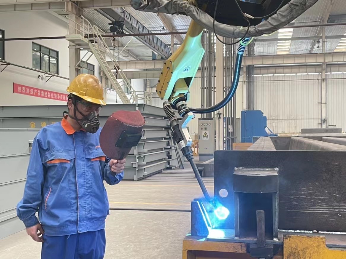 金鐘研發(fā)部門為提升汽車衡秤臺的承重強度,新設(shè)計了U型梁結(jié)構(gòu),經(jīng)過試制和不斷推廣,訂單逐步增加,汽車衡班的工作壓力也不斷加大,而汽車衡的稱臺焊接成為了制約工作效率的瓶頸。為了能夠按時保質(zhì)完成生產(chǎn)任務(wù),黨支部組織成立“黨員編程突擊隊”,由黨員張慶力任隊長,突擊隊成員發(fā)揮模范帶頭作用,發(fā)揚匠心精神,成功解決了“汽車衡自動化焊接編程”和自動焊機在平臺底部尋位不準(zhǔn)難題,最大限度地提高焊接機器人的效率。