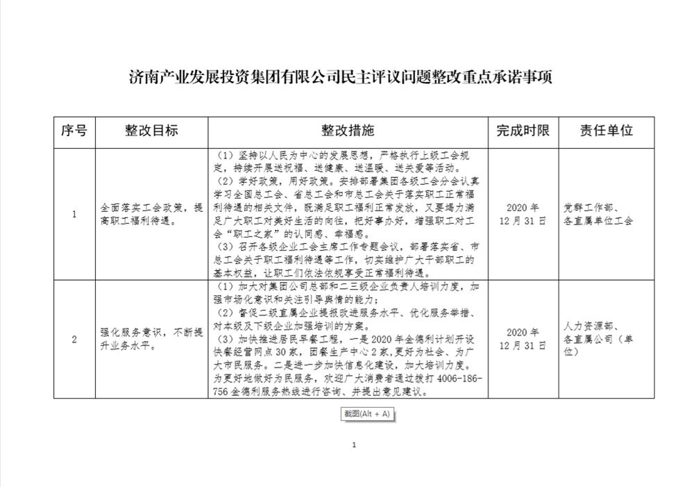 產(chǎn)發(fā)集團(tuán)民主評(píng)議問題整改重點(diǎn)承諾事項(xiàng)